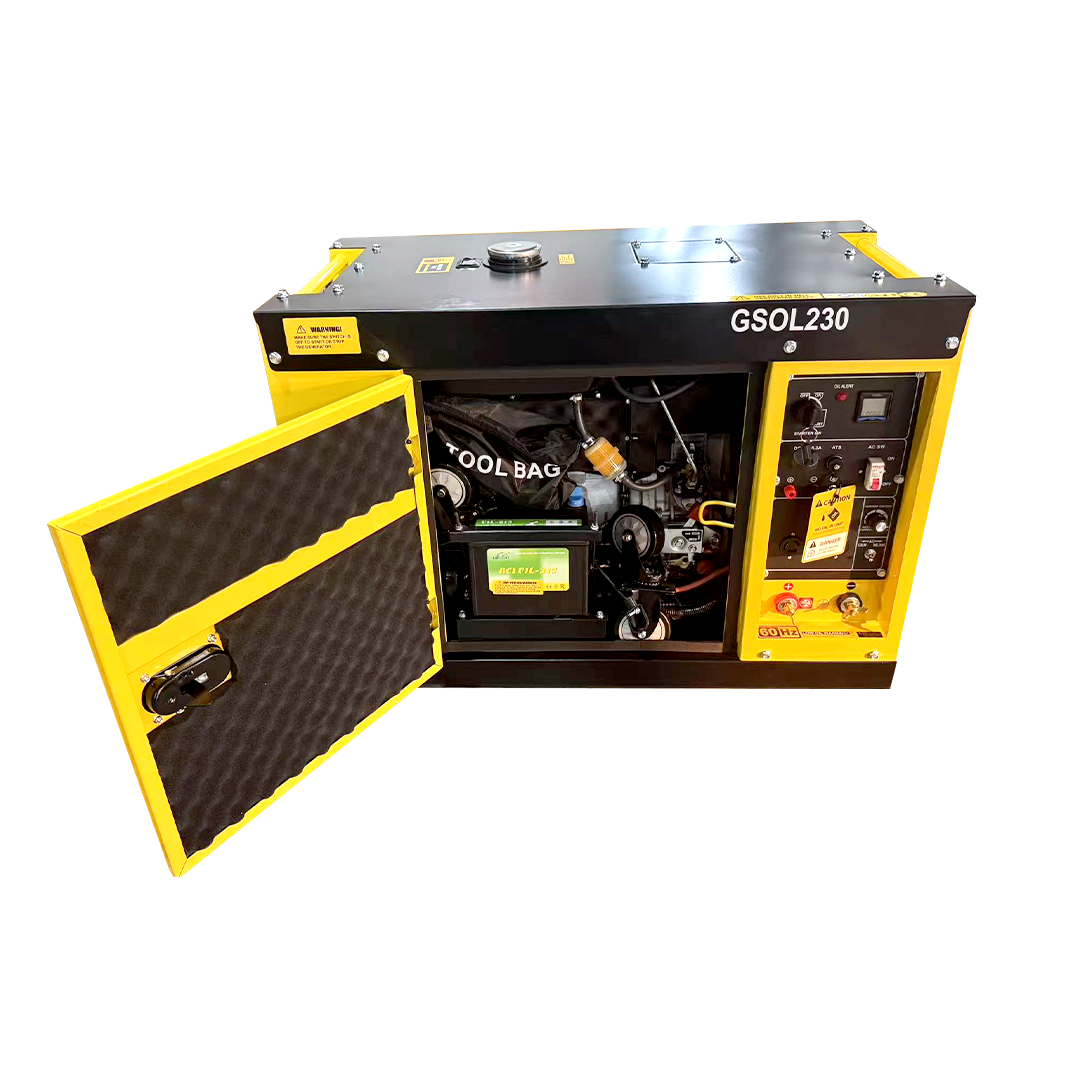 - El generador soldador diesel GSOL230 ofrece una función dual de soldadura por arco y generación de voltaje, con una corriente ajustable de hasta 230A. Compatible con electrodos de 2.0 a 4.0 mm, cuenta con un motor de inyección directa refrigerado por aire y arranque eléctrico. Proporciona una salida estable con bajo ruido y funcionamiento continuo de hasta 10 horas, ideal para aplicaciones industriales.