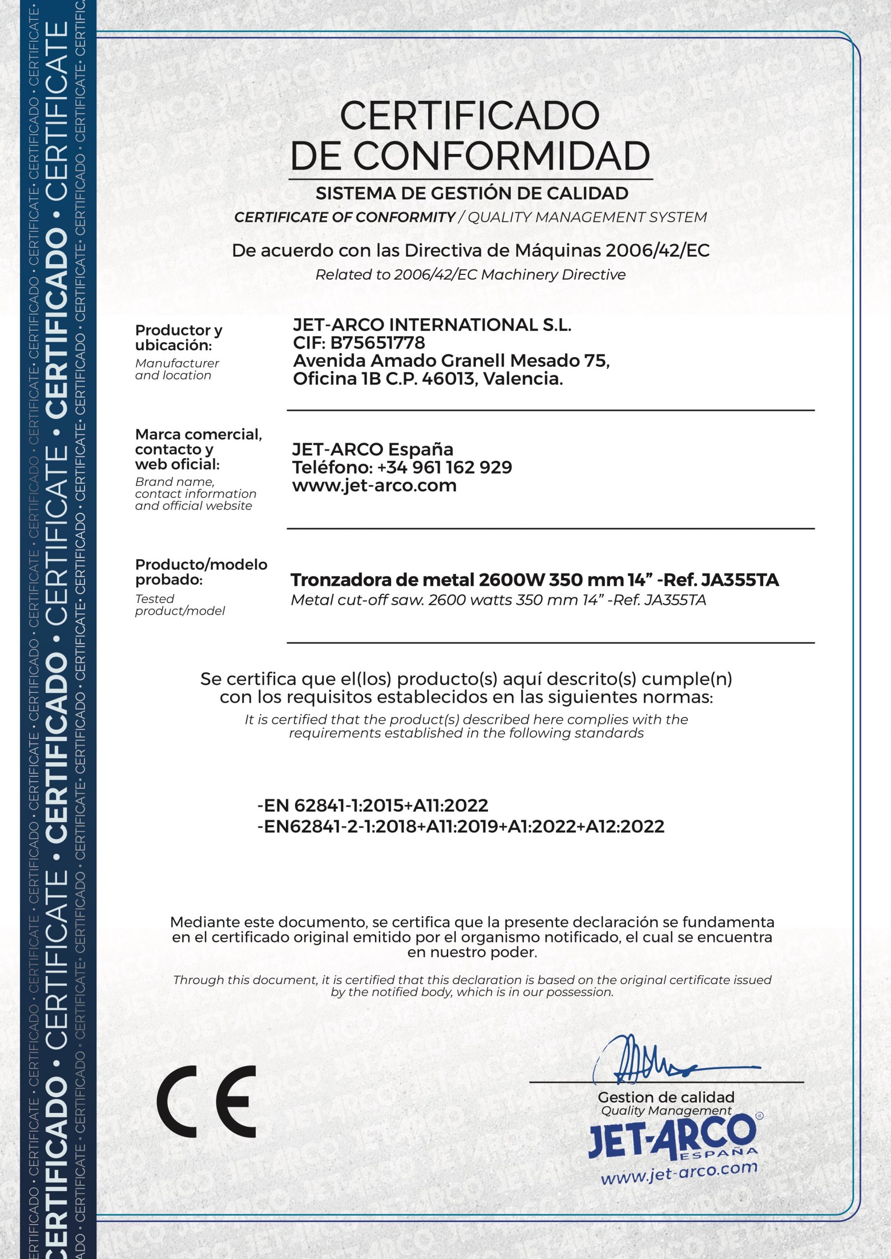 JA355TA – Tronzadora de Metal 2600W 350 mm (14″)